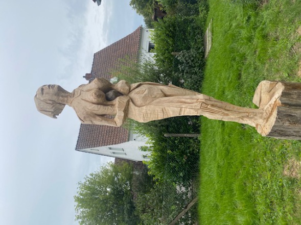 Es zeigt meine entstandene Skulptur "Symbiose", Eiche, Höhe ca. 2,3 Meter